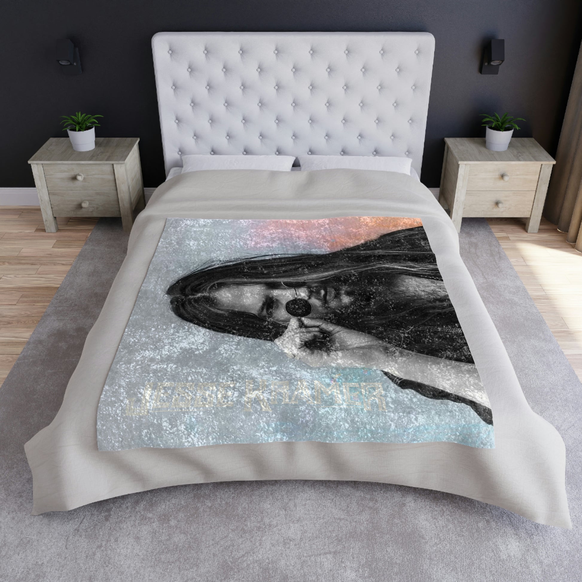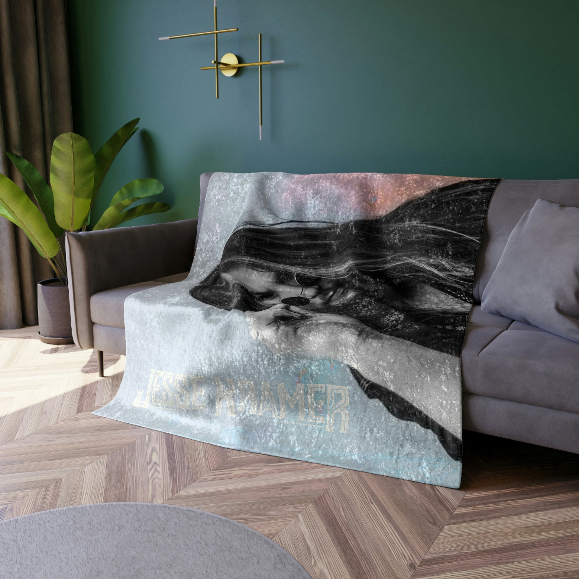 Super soft, super comfy—this crushed velvet blanket with an original custom design will be the perfect addition to the living room couch. It's made from high-quality, durable 100% polyester fabric with zig-zag stitches on its edges.